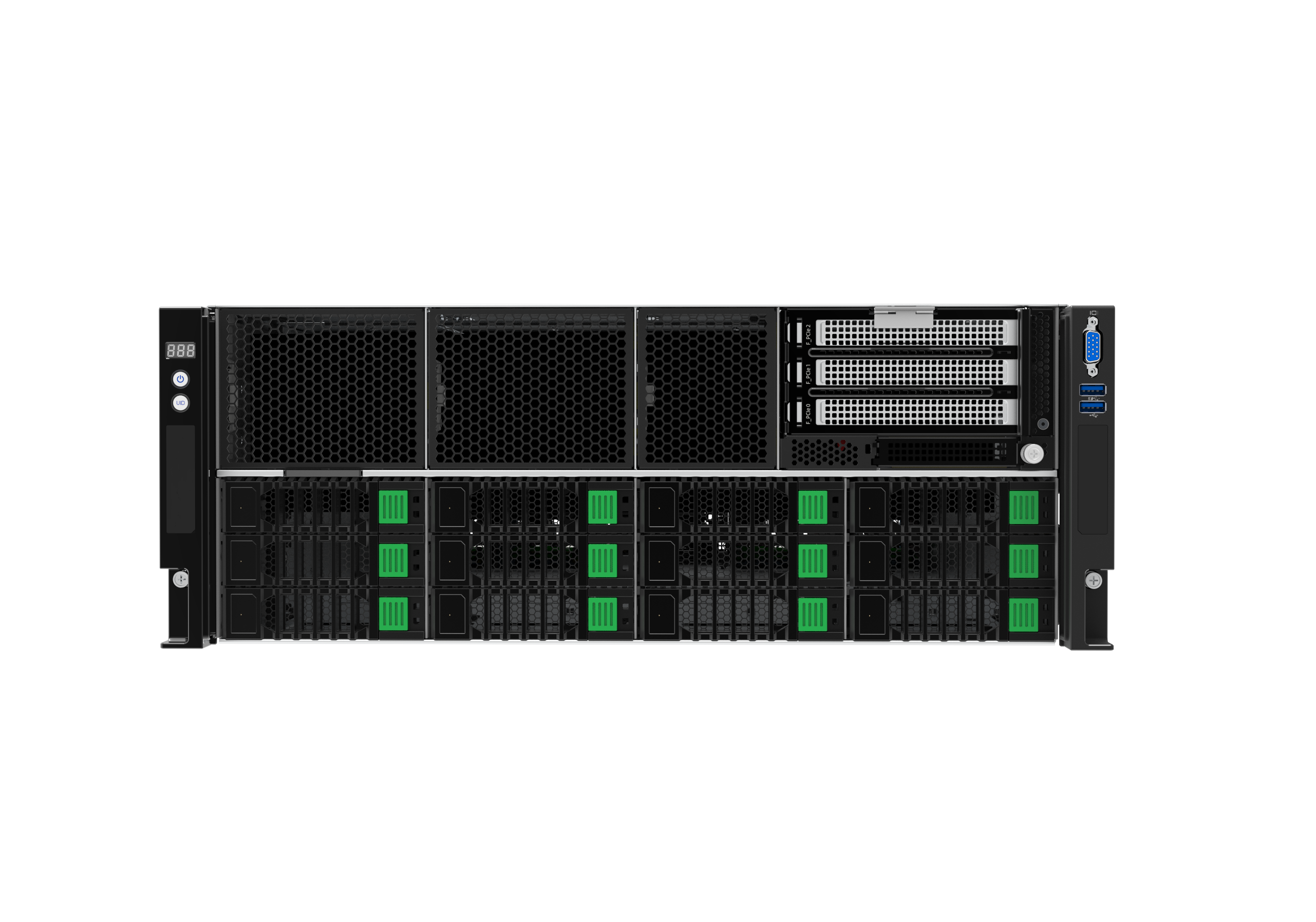 前面板共12個3.5 英寸組合SATA/SAS抽屜。其中4 個NVMe/SATA/SAS抽屜。10個PCIe 5.0X16,以提供更高的帶寬和系統(tǒng)升級