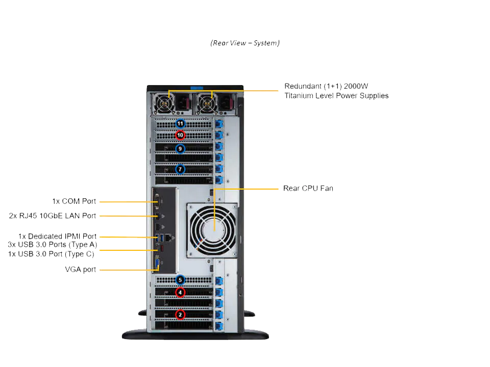 助力加速 AI 和 HPC 工作負載: 高達5個雙插槽 GPU, 包括 NVIDIAA100或4路NVIDIA4090