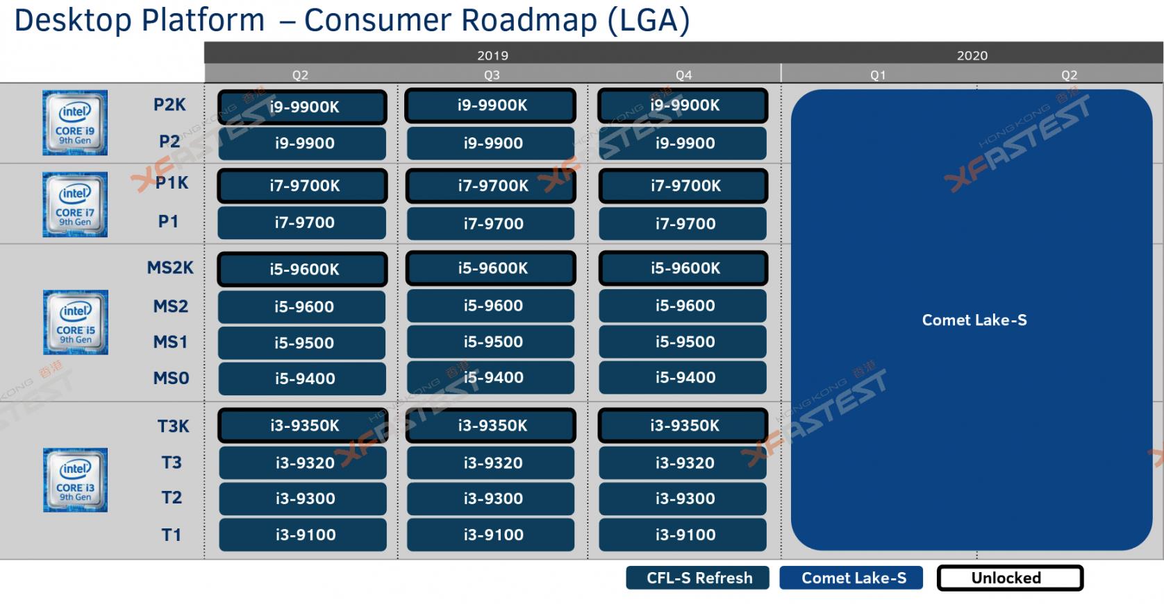 Xfastest網(wǎng)站日前曝光了Intel官方的PPT,基本上可以確認桌面版Comet Lake-S處理器會在明年Q1季度發(fā)布,搭配400系芯片組,插槽為LGA1200,最多10核20線程。
