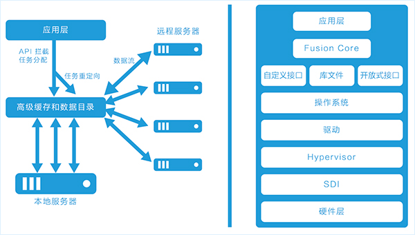 Matrix Fusion強(qiáng)大的靈活性來源于Fusion Core計算虛擬化引擎。Fusion Core控制應(yīng)用和基礎(chǔ)GPU計算之間的API調(diào)用指示,允許GPU負(fù)載靈活分布于本地GPU內(nèi)存、網(wǎng)絡(luò)附加GPU、擴(kuò)展至高達(dá)64個GPU,提供強(qiáng)大的整體性能。