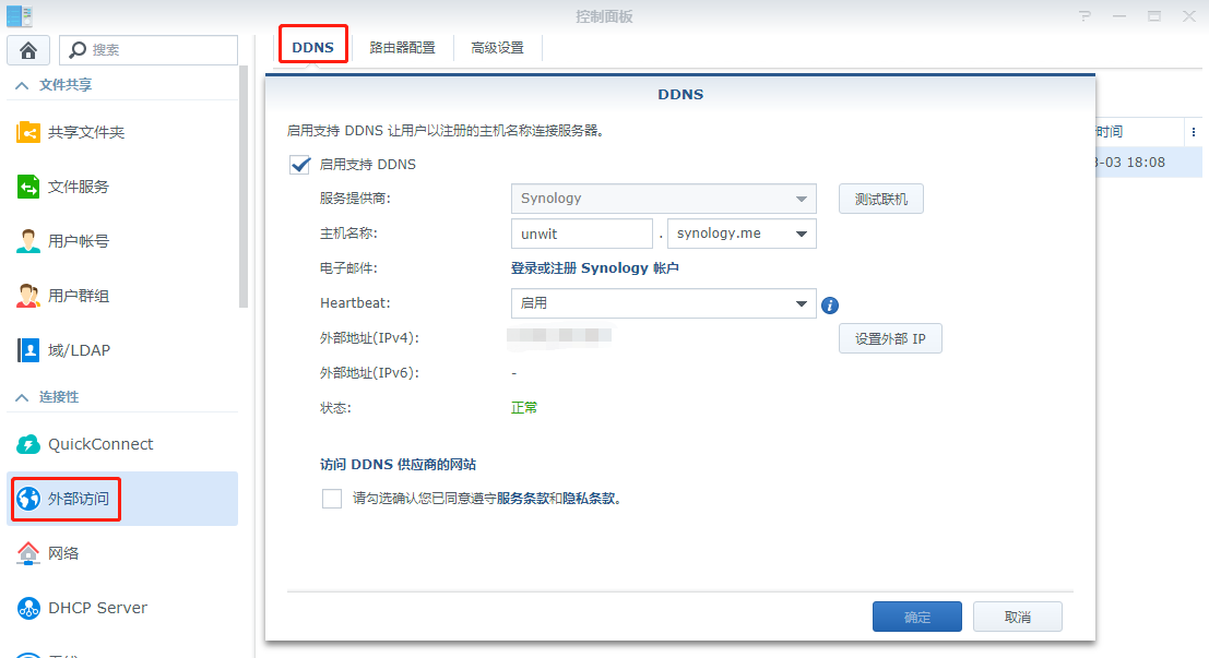 4、如果是動(dòng)態(tài)的公網(wǎng)IP,群暉提供免費(fèi)的域名申請(qǐng),可以通過訪問\\域名來訪問SMB共享。