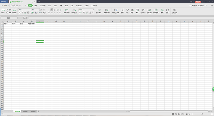 在同一行單元格中,按照下列順序輸入用戶信息: