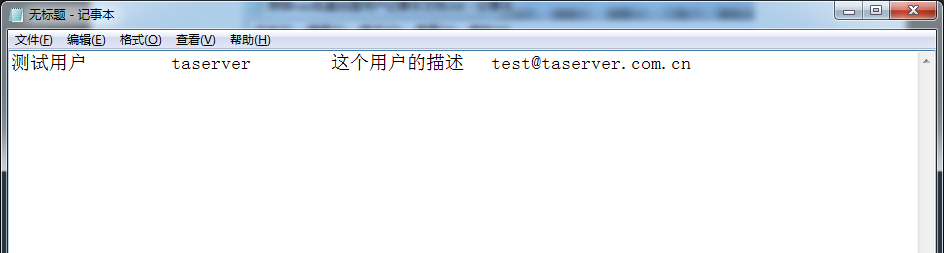 使用記事本打開一個(gè)新文件。按照下列順序輸入用戶信息,并以 TAB 鍵分隔: